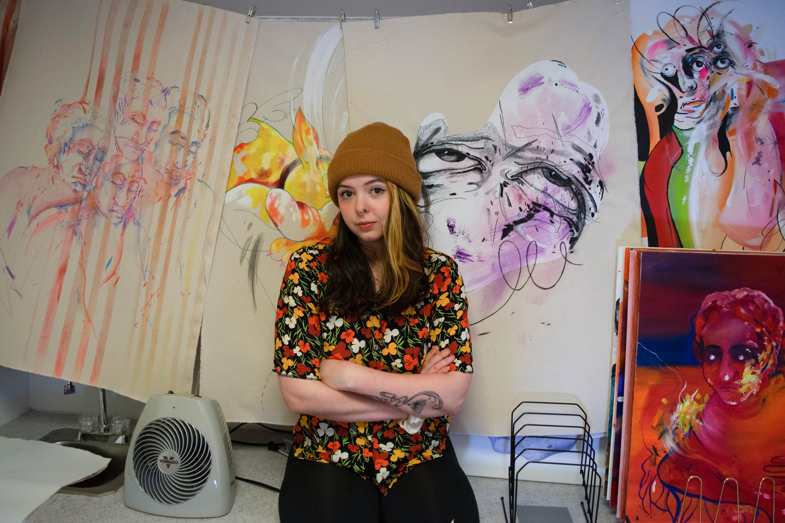 Hannah Witner is a Brooklyn-based multidisciplinary artist, designer, and art director whose work explores the fluid boundaries between the body, environment, and technology. Born in Charlotte, NC, she earned her BFA from Parsons School for Design and has since developed a practice that spans oil painting, airbrush painting, fiber arts, ceramics, digital media, and riso printing, and illustration. Her work evokes the disorienting logic of a fever dream, using biomorphic forms and surreal landscapes to challenge perceptions of identity, femininity, and otherness. She has participated in artist residencies in Hungary, Portugal, France, Serbia, Switzerland, and Iceland.