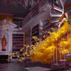 A striking woman dashes up a spiral staircase. Soft and enveloping, her brilliant yellow dress trails her, releasing canaries from its tulle plumage. Upon closer look, the freed birds are duplications of the canary from a famous John-Baptiste Greuze painting. Away With the Canaries is a highly collectible piece from Miss Aniela’s acclaimed Surreal Fashion collection.