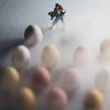 Cadbury's Mini (Alien) Eggs by David Gilliver transforms the playful familiarity of candy-coated chocolate eggs into a scene filled with suspense and imagination. Shot on Olmec Matte Photo Paper 230gsm, this limited edition print captures the tension between innocence and the unknown. A lone figure armed and alert stands guard against what might emerge from the pastel-colored eggs, shrouded in soft mist. The contrast between childhood sweetness and cinematic danger creates a striking narrative that is both whimsical and unsettling. Collectors will appreciate how Gilliver blends humor, surrealism, and cultural references to craft a piece that is as thought-provoking as it is visually engaging. Available in multiple sizes, this work invites viewers to balance nostalgia with the thrill of the unexpected.