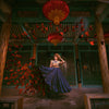 Her skirt an opened cage, a woman watches as dozens of cardinals take flight, their carmine feathers as brilliant as the hanging silk lanterns. Shot at Prince Kung’s Mansion in Beijing, this gorgeous piece features sumptuous haute couture by Guo Pei. Meticulous CGI was used to place the cardinals, long considered a symbol of devotion and determination.