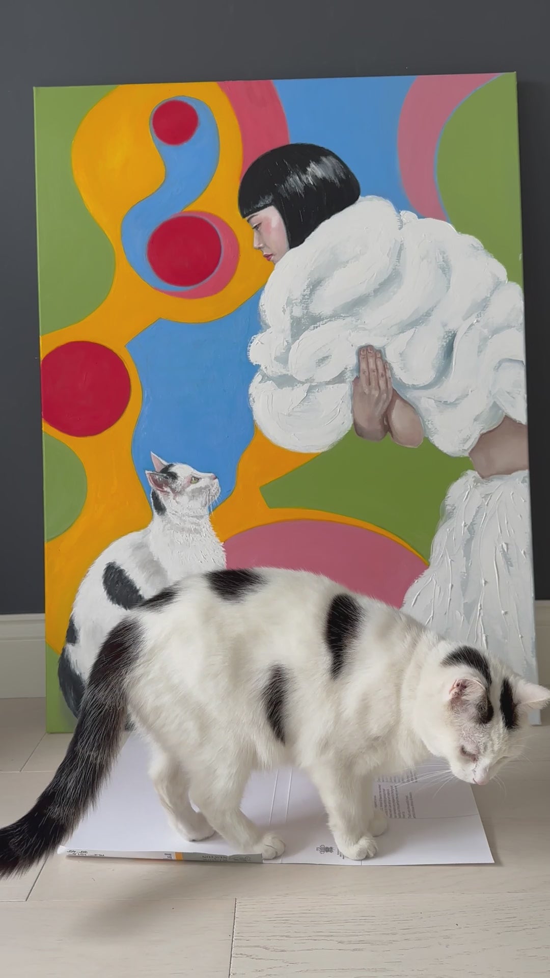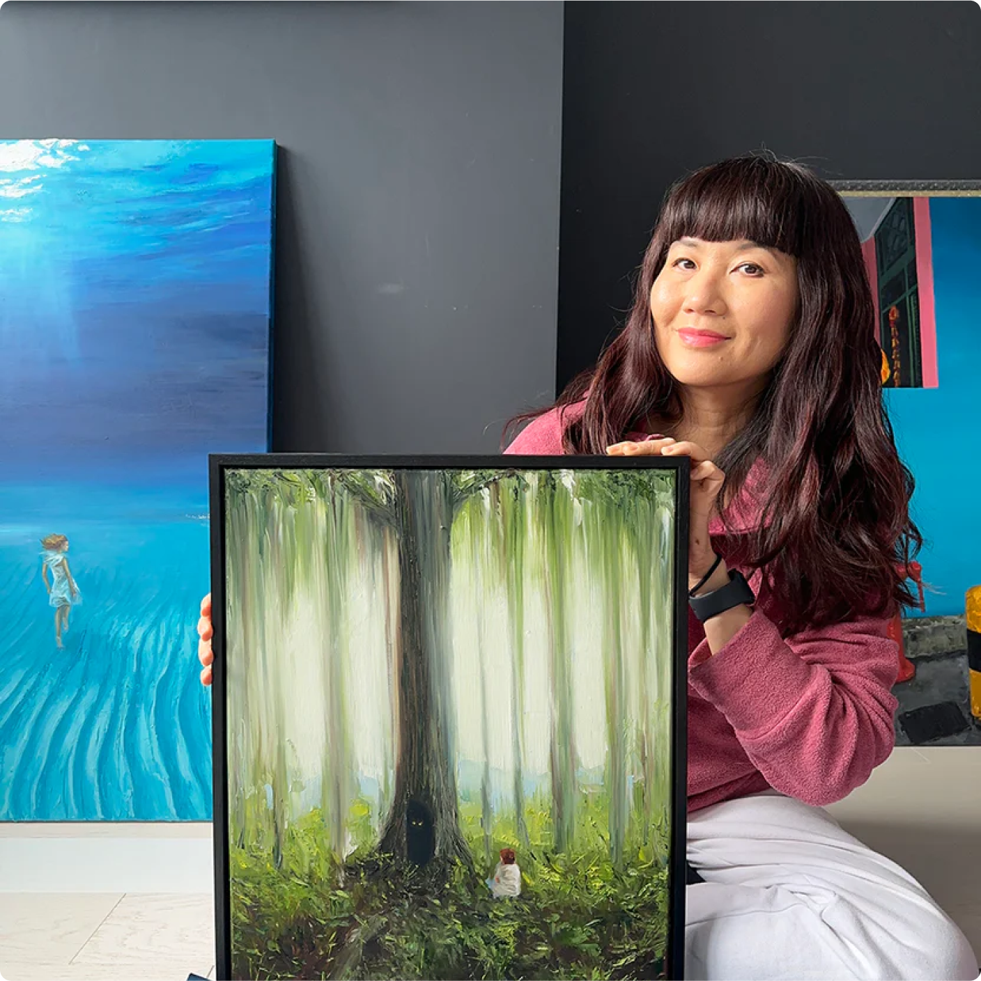 Her favorite medium is oil, using the classic style oil painting techniques to create contemporary pieces. She gets her inspirations from observing life, exploring a concept or a current topic. Her body of work ranges from traditional realistic portraits, contemporary landscapes to topical themes in graphic style.
