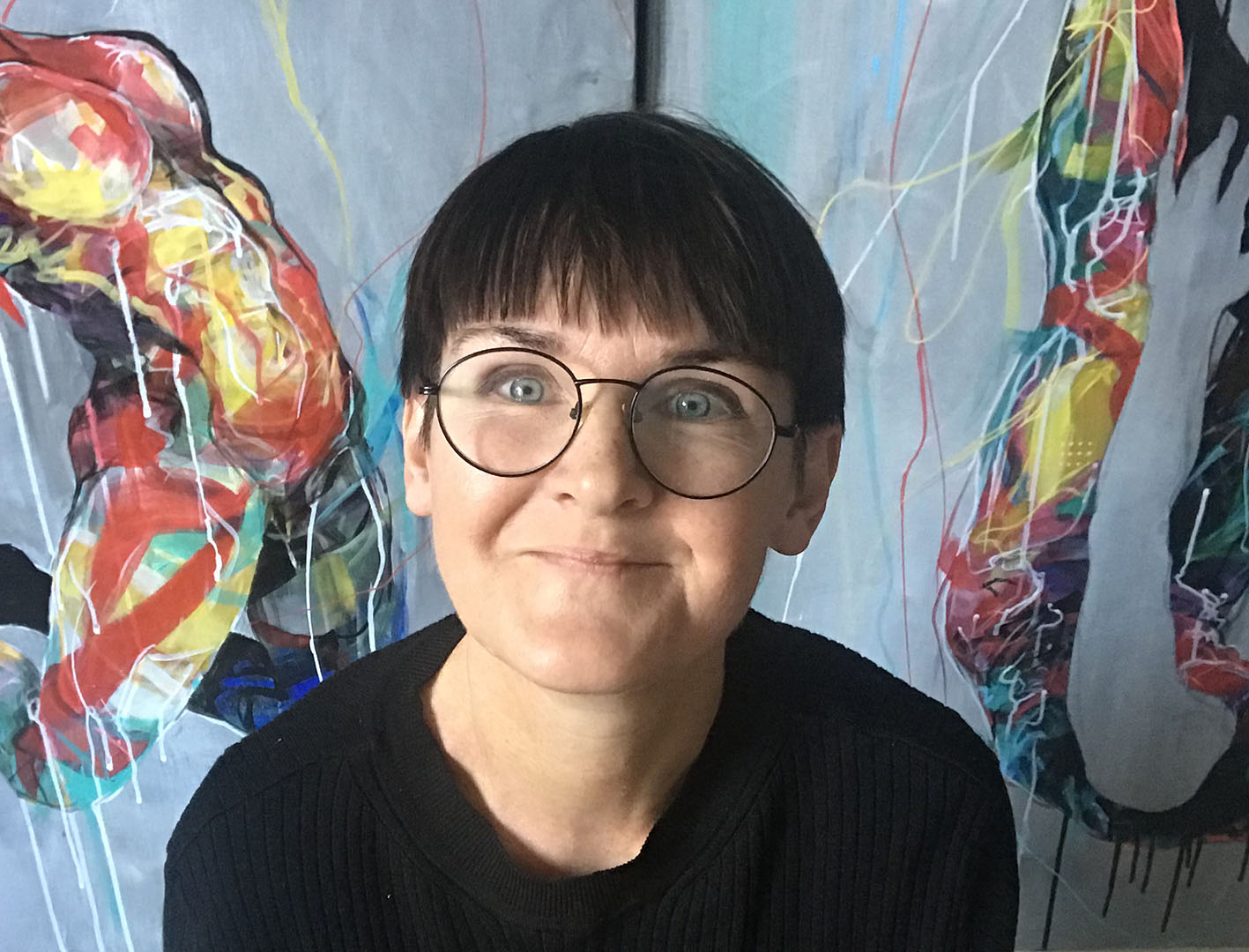 Artist statement: I’m drawn to what can’t be said—what lives beneath the surface. I paint people to reveal their inner emotions through body language and posture. I use colors and lines to intensify the stories, in a raw and expressionistic manner.