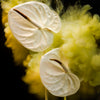 Into A Yellow Wood captures the quiet drama of two luminous anthurium blooms rising against a backdrop of golden vapor. The white petals, sculptural in form and striking in contrast to the surrounding haze, appear both delicate and enduring. The glowing field of yellow suggests light, memory, and the passage of time, evoking a symbolic threshold between clarity and mystery.