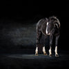 The composition conveys stillness and intimacy, with the horse’s elegant form and gentle gaze evoking themes of resilience, vulnerability, and grace. The dark surrounding space accentuates the figure, transforming it into a powerful emblem of beauty and endurance. The result is a portrait that feels timeless and contemplative, inviting collectors to engage with the symbolic bond between humans, animals, and the natural world.