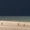 "ON THE BEACH II – DRAMA & LIGHT A storm looms on the horizon over the North Sea, whilst golden light transforms the foreground. Printed on textured aluminium, this piece shifts beautifully with the light