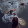 Ophelia's Drowning 1 presents a dreamlike moment suspended between fragility and quiet strength. The photograph captures a figure floating in still water, draped in delicate fabric that moves softly around her like a second skin. Scattered flowers drift beside her, creating a sense of ritual and symbolism that echoes themes of surrender, renewal, and inner reflection.