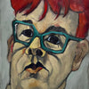 Red Hair is a bold and stylized portrait by Barbara Storey, brimming with personality and intensity. Created in pastel and printed on fine art paper, this piece presents a striking figure with vivid red hair, teal-framed glasses, and an expressive, almost sculptural face. The exaggerated features and saturated palette blur the lines between caricature and psychological portraiture, offering a deeply personal, enigmatic presence.
