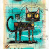 RoboCat-1 blends hand drawn precision with playful imagination through watercolor, ink, colored pencil, and acrylic, reproduced as a signed and numbered giclée print on Hahnemuhle Photo Rag paper.