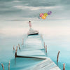 The Pursuit captures a quiet moment of courage and possibility as a lone figure moves forward across a fragmented pier, guided by a cluster of softly glowing balloons. Printed as a giclée on Hahnemühle German Etching 310gsm paper, the artwork balances delicate texture with painterly depth. Cool, expansive blues create a calm, open atmosphere, while the gentle pastel tones of the balloons introduce hope, movement, and intention.