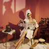 The Stalker is a masterful blend of domestic calm and unsettling presence. A woman sits absorbed in her morning ritual, wrapped in a robe with newspaper in hand, yet the looming shadow of Mickey Mouse ears on the wall hints at a voyeuristic intrusion. The contrast between the polished elegance of her routine and the playful yet menacing silhouette introduces a layered dialogue about comfort, privacy, and the unseen forces that linger just beyond perception.