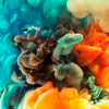 This image showcases a mesmerizing swirl of colorful smoke or ink suspended in liquid, captured against a black background. The composition features flowing, cloud-like plumes in shades of teal, turquoise, and hints of white, blending seamlessly with each other to create an ethereal, almost nebula-like effect. The soft, smooth textures and delicate tendrils of the smoke give it a dynamic and fluid appearance, while tiny white specks scattered throughout add a sense of depth and dimension. The overall aesthetic is abstract and otherworldly, evoking a sense of motion and transformation.